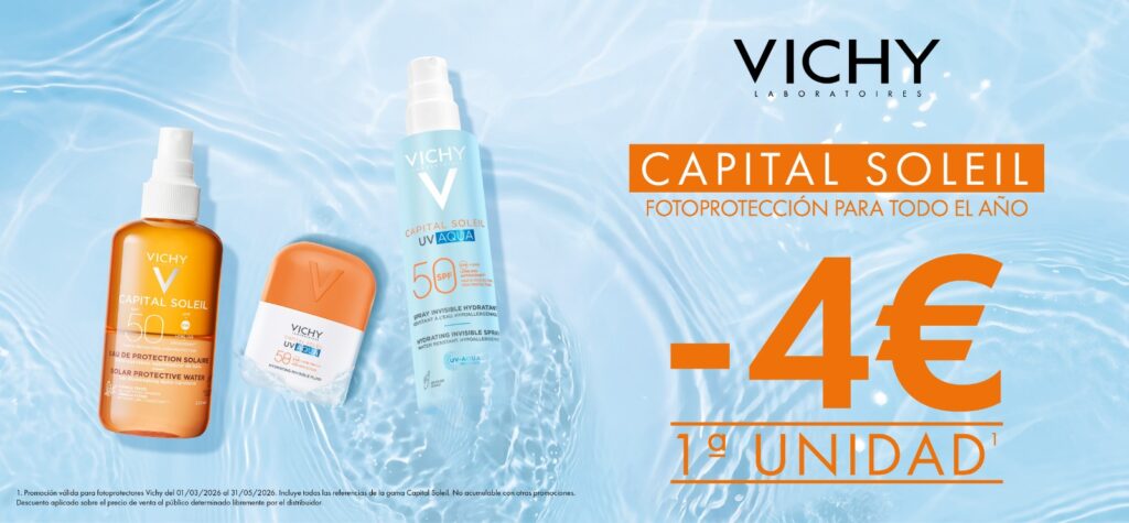 En Farmacia Irene Ramón, disfruta de 4€ de descuento en la 1ª unidad de la gama Capital Soleil de Vichy.