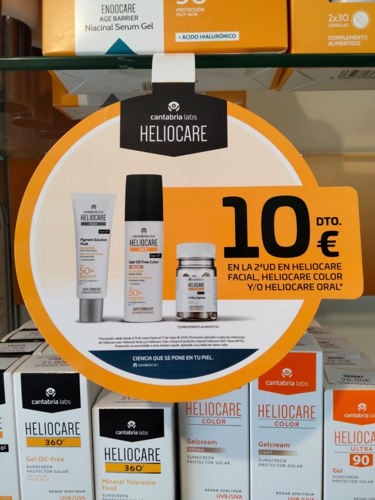 Desde hoy hasta el 17 de mayo, disfruta de un -10€ de descuento en la segunda unidad al comprar productos de Heliocare: Heliocare Facial, Heliocare Color y Heliocare Oral.